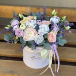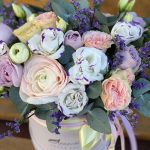 “Сиреневый туман” – композиция из гипсофилы в шляпной коробке