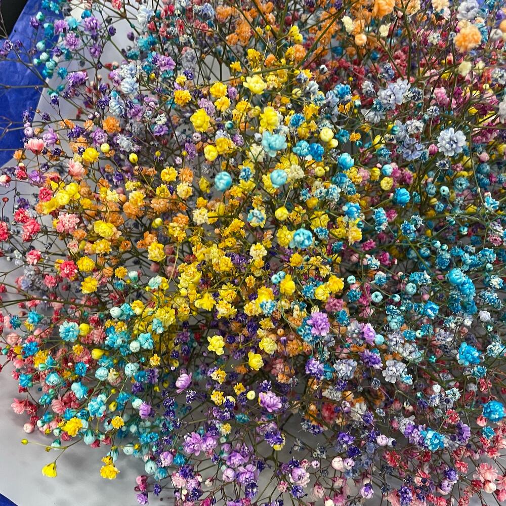 Упаковка дизайнерская – 1 шт.Лента атласная – 1 шт.радужная гипсофила – 15 шт.