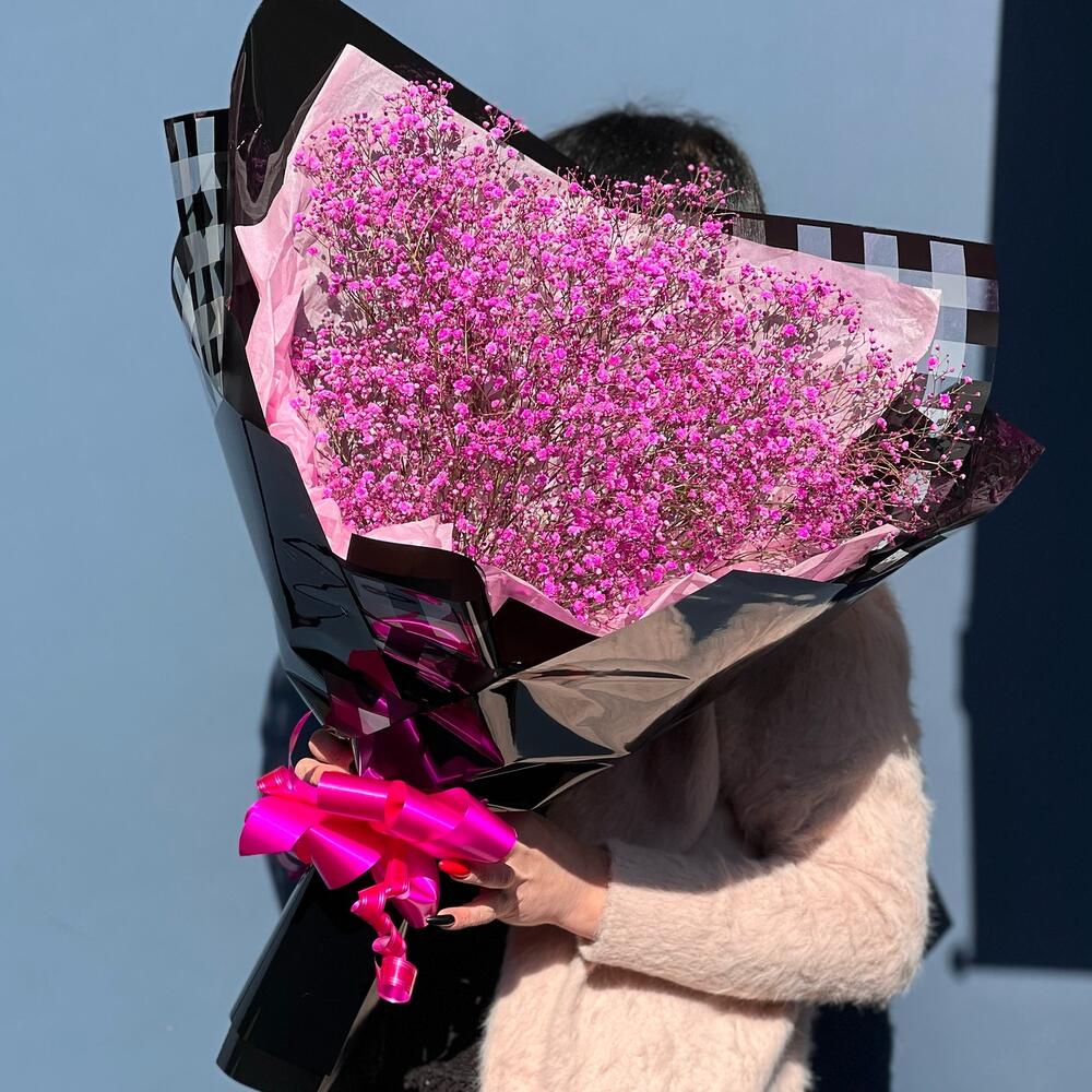 Нежный букет из гипсофилы в стильном оформлении Black Edition