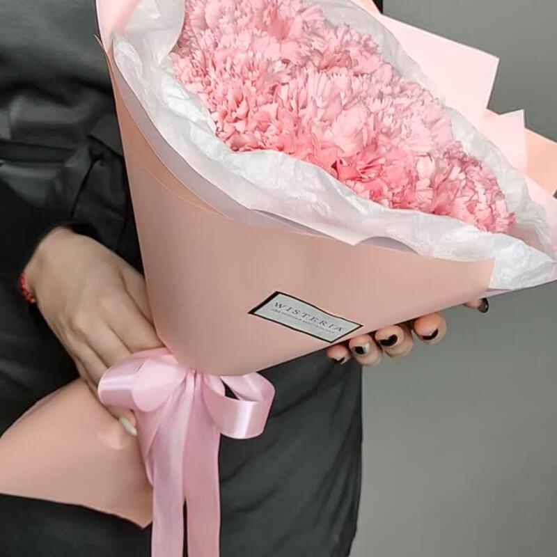 Тишью – 1 шт.Диантус – 9 шт.Упаковка дизайнерская – 1 шт.Лента атласная красная – 1 шт.