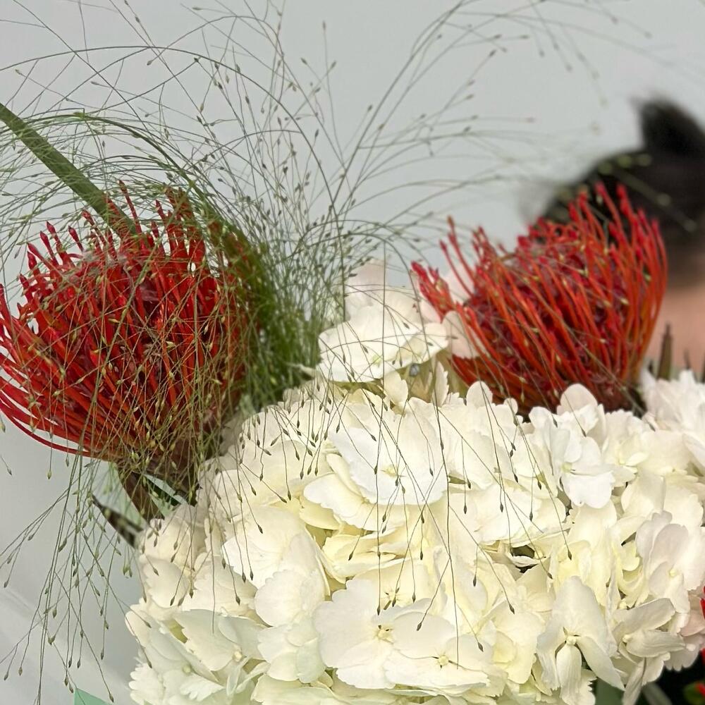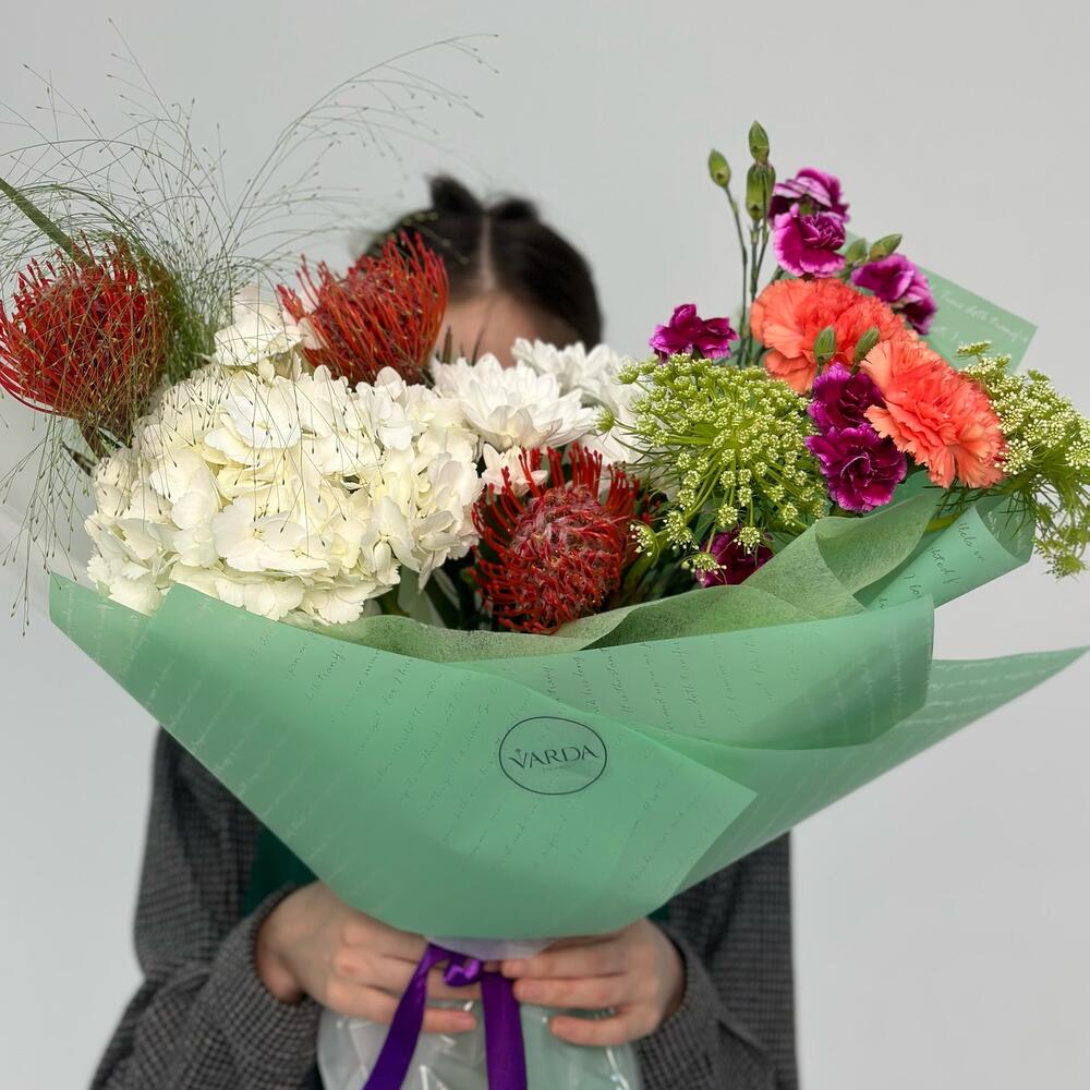 Гвоздики, Кустовые розы, Пионовидные розы, Розы