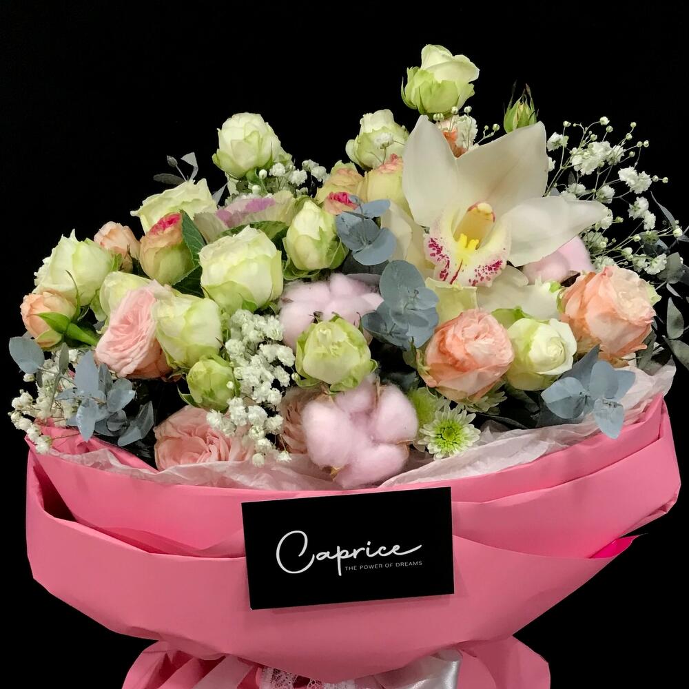 Кустовые розы, Лизиантусы, Розы, Сухоцвет