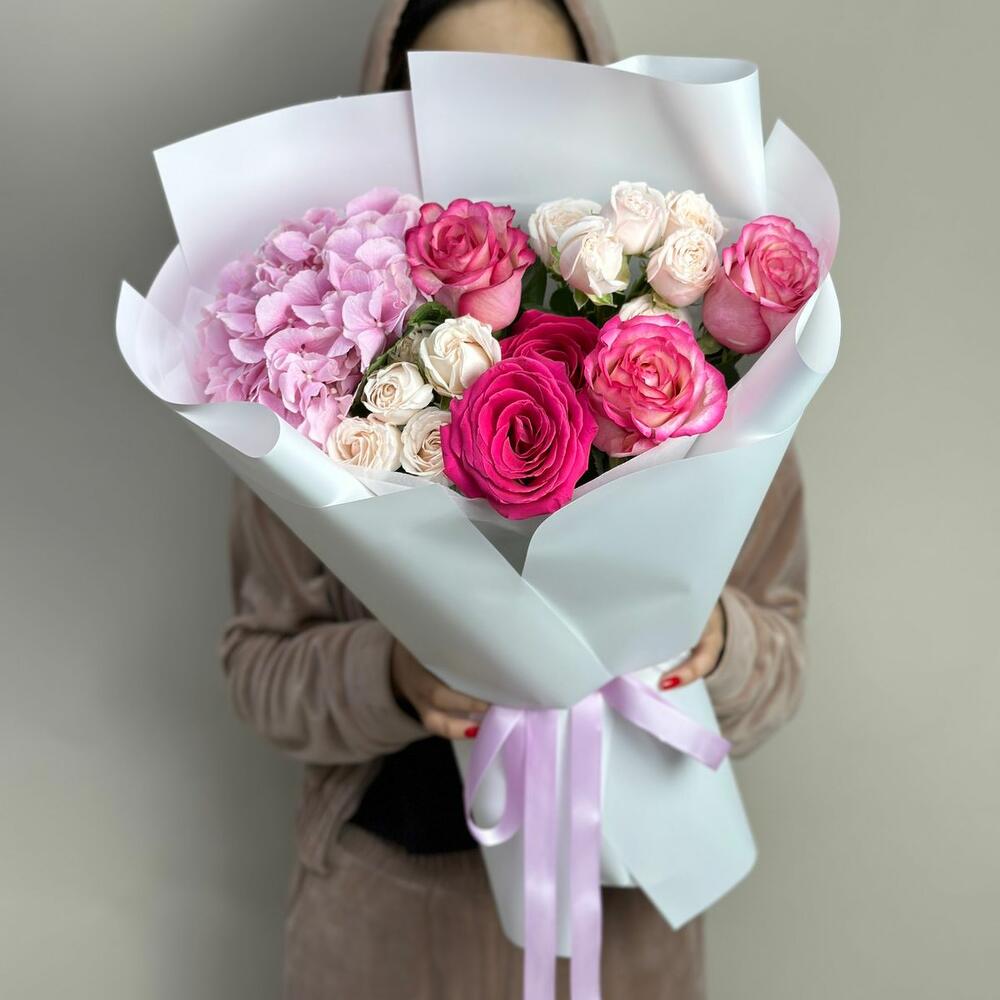 Гортензии, Кустовые розы, Лизиантусы, Пионовидные розы, Розы
