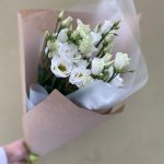 Лизиантус Алиса белый – 5 шт.Упаковка крафт дизайнерский – 1 шт.Лента – 1 шт.