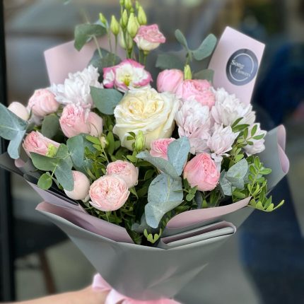 “Эвкалиптическая роскошь” гортензия и пионовидная кустовая роза