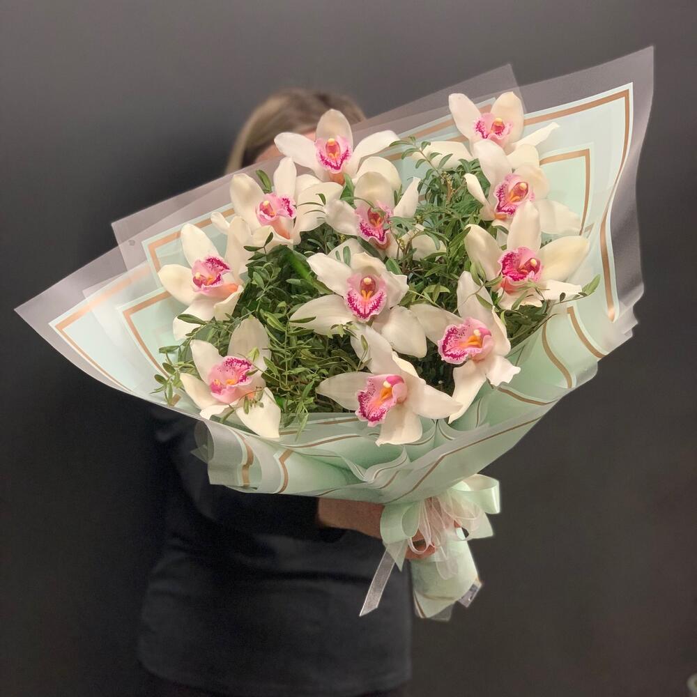 Орхидея Цимбидиум – 11 шт.удлинитель для орхидеи – 11 шт.Фисташка – 6 шт.Упаковка дизайнерская – 3 шт.