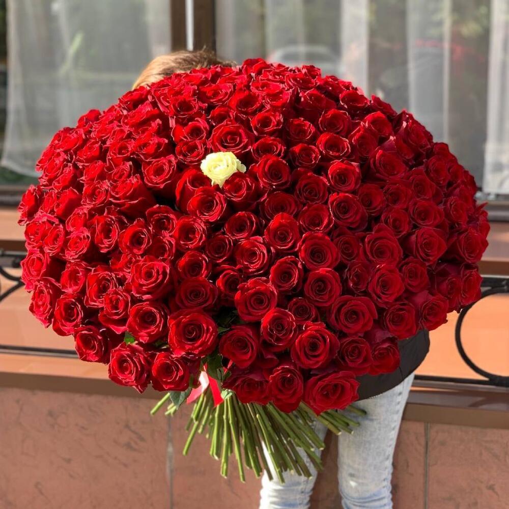 Роза эквадор 90 см – 151 шт.Лента атласная – 1 шт.
