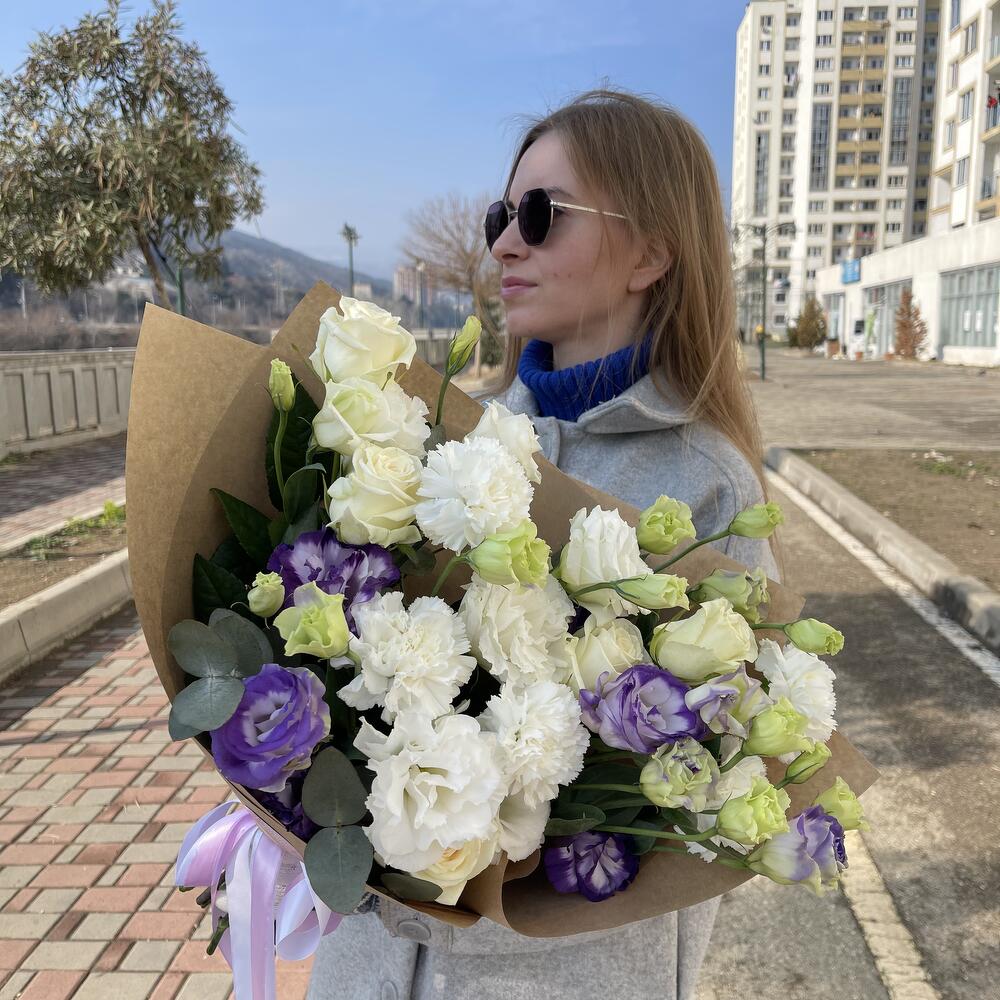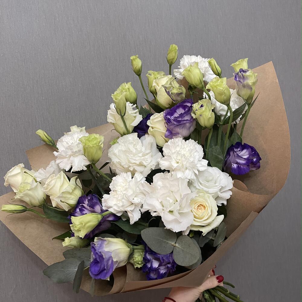 Категорий: Гвоздики, Диантус, Лизиантусы, Розы, Эвкалипт, Эустома