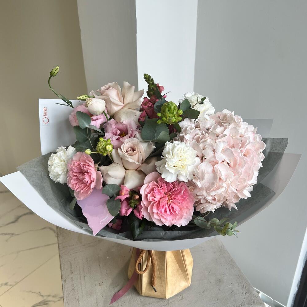 Альстромерии, Кустовые розы, Лизиантусы, Пионовидные розы, Розы, Ромашки