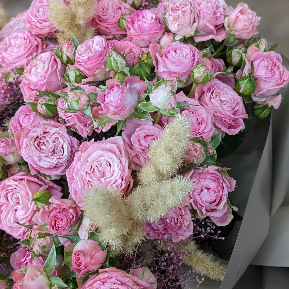 Гвоздики, Кустовые розы, Лизиантусы, Пионовидные розы, Розы