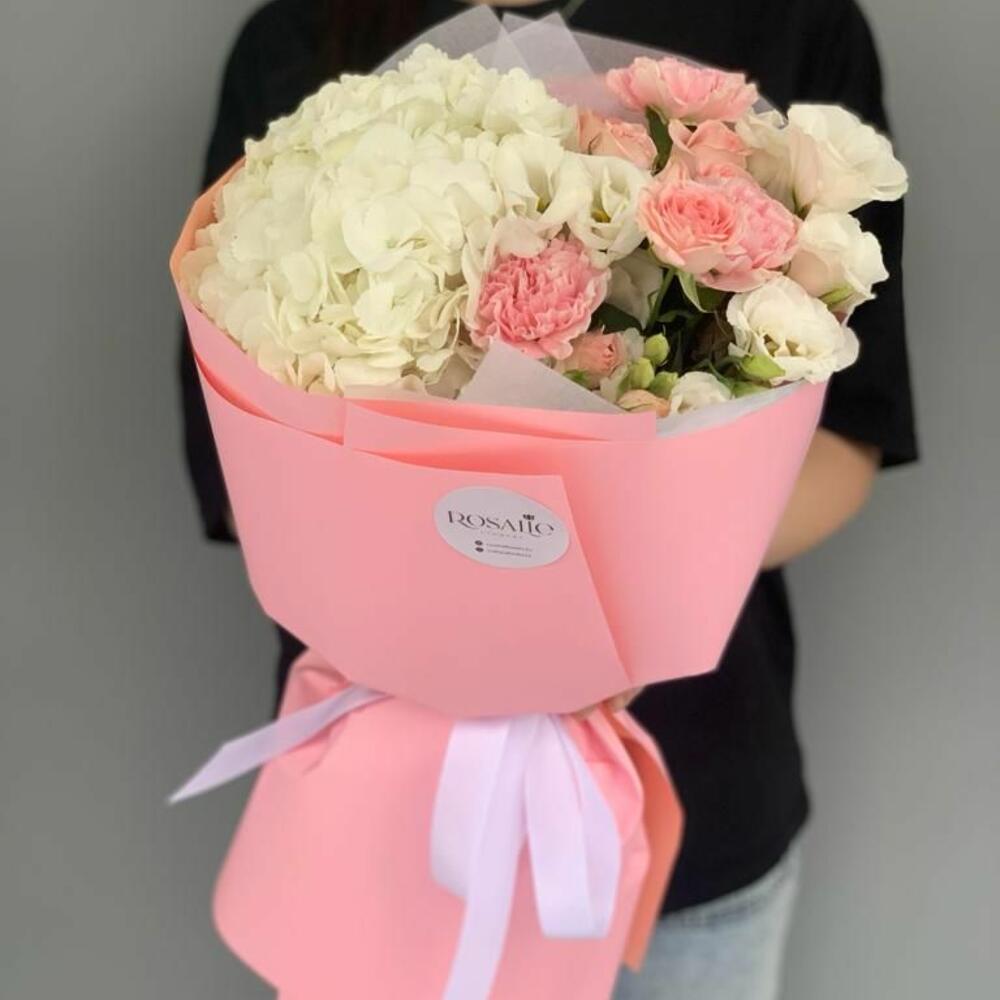 Альстромерии, Гвоздики, Кустовые розы, Лизиантусы, Розы, Хризантемы