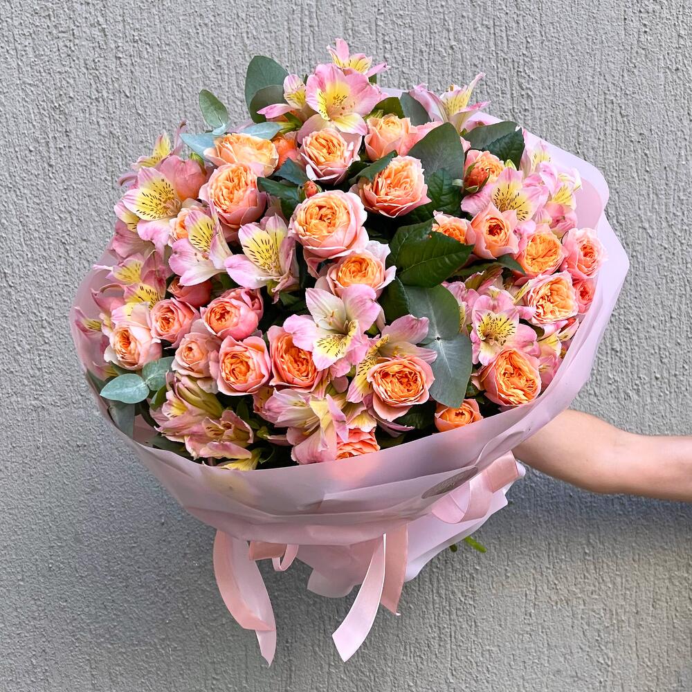 Категории: Альстромерии, Кустовые розы, Розы, Эвкалипт