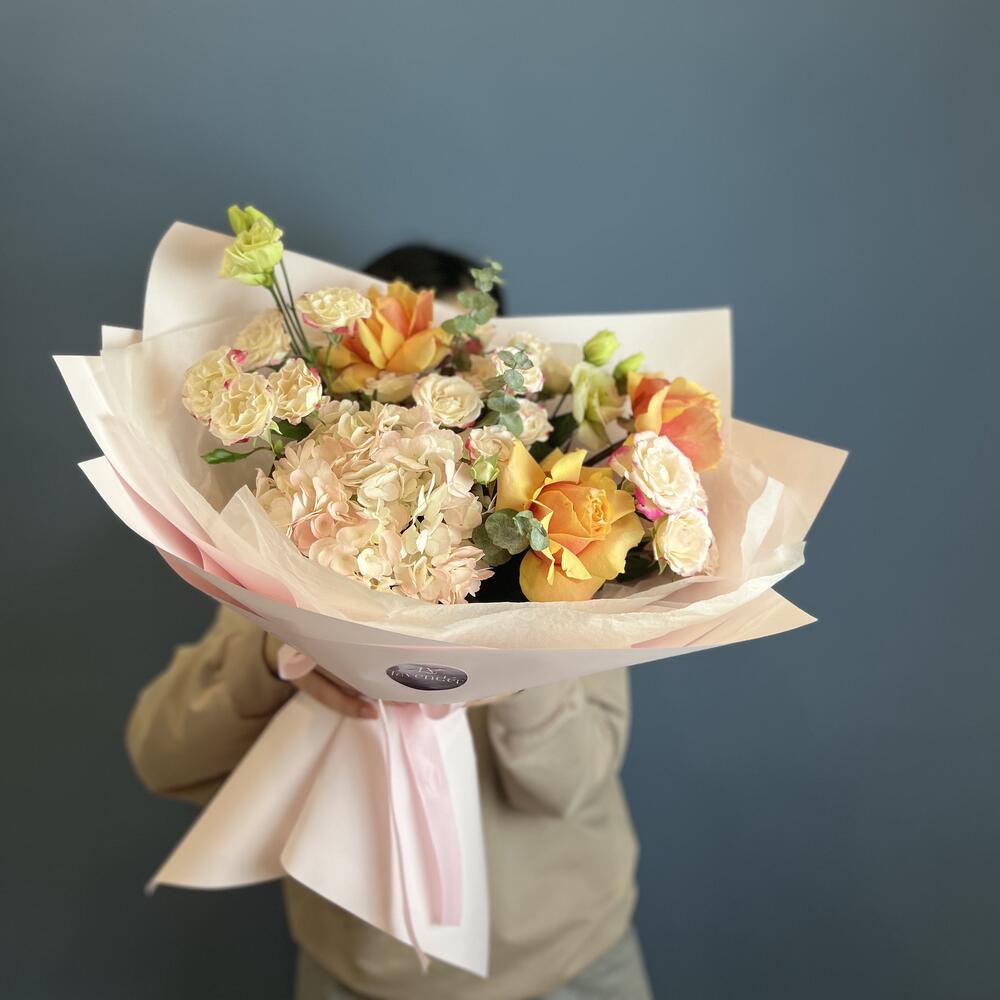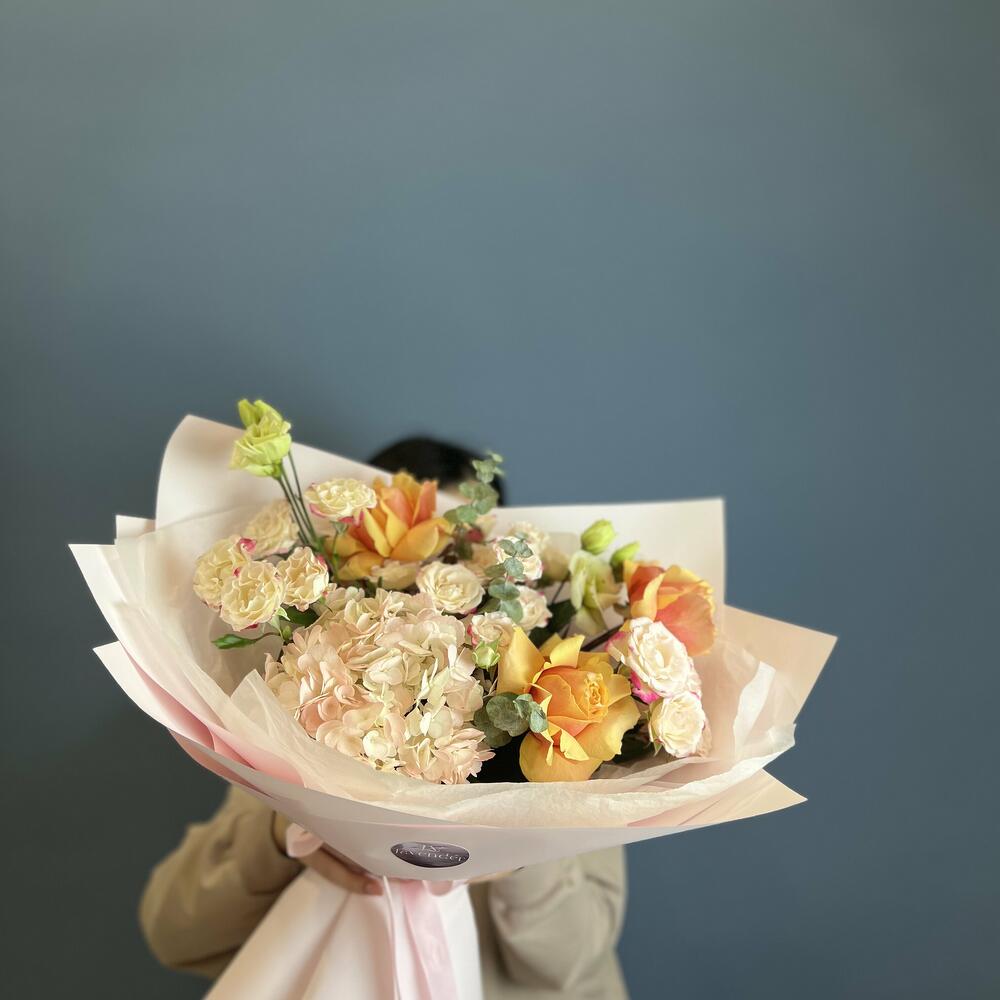 Гвоздики, Лизиантусы, Розы, Тюльпаны