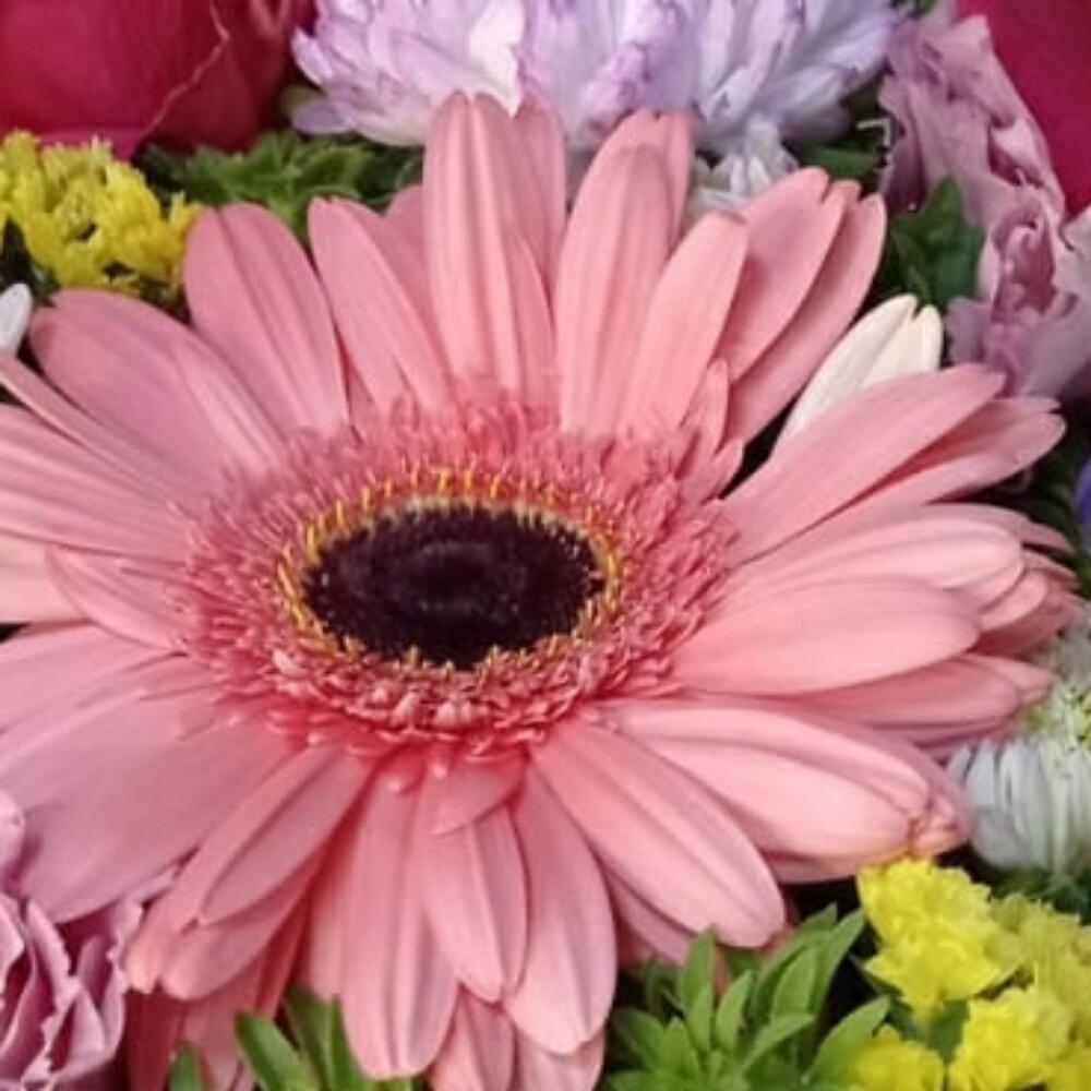 Роза – 5 шт. Альстромерия Микс Европа – 6 шт. Астра кустовая – 4 шт. гербера микс эквадор – 2 шт.