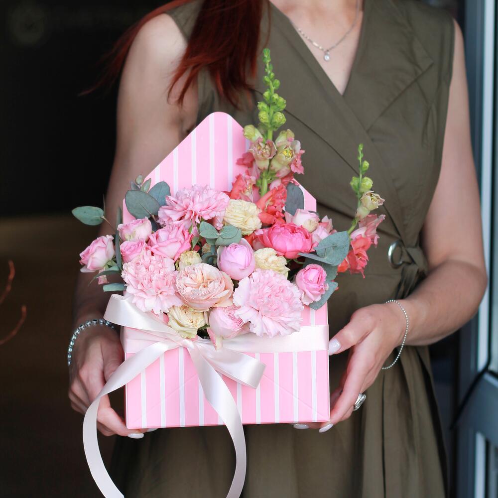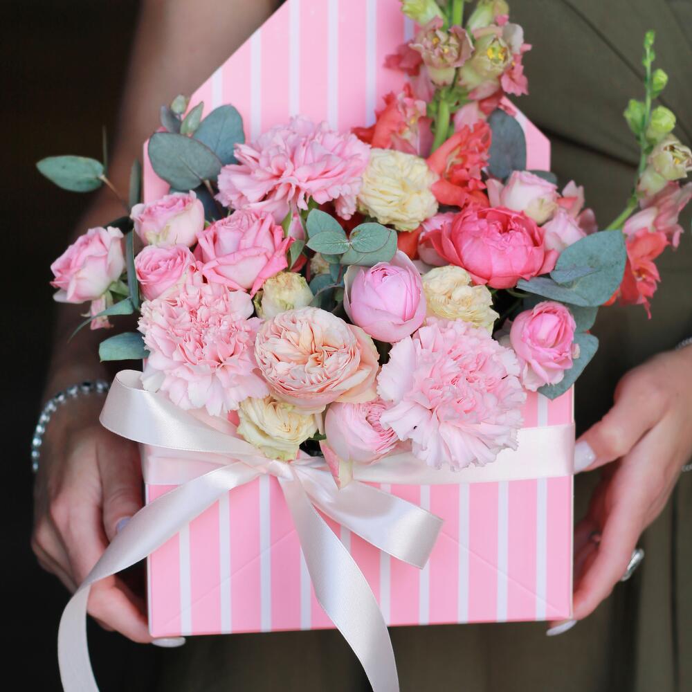 Гвоздики, Лизиантусы, Розы, Тюльпаны
