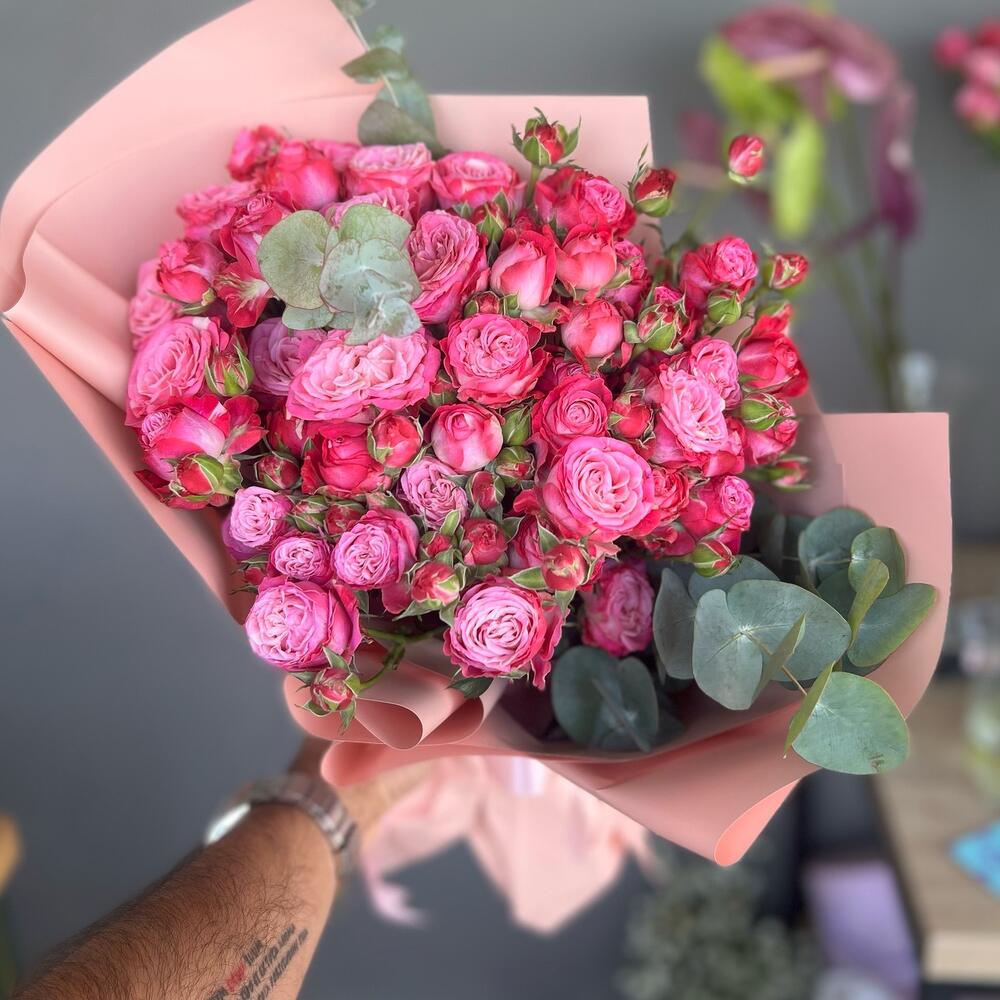 Гвоздики, Кустовые розы, Лизиантусы, Пионовидные розы, Розы