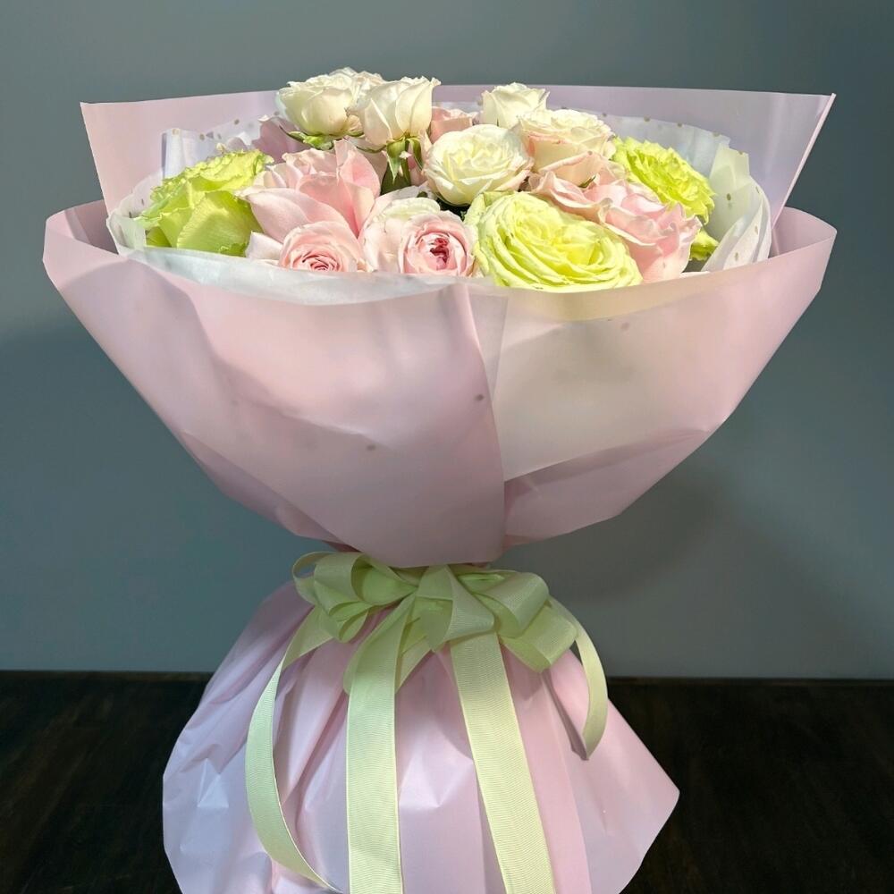Альстромерии, Кустовые розы, Лизиантусы, Пионовидные розы, Розы, Ромашки