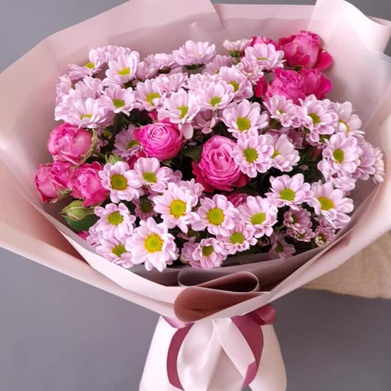 Гвоздики, Кустовые розы, Пионовидные розы, Розы