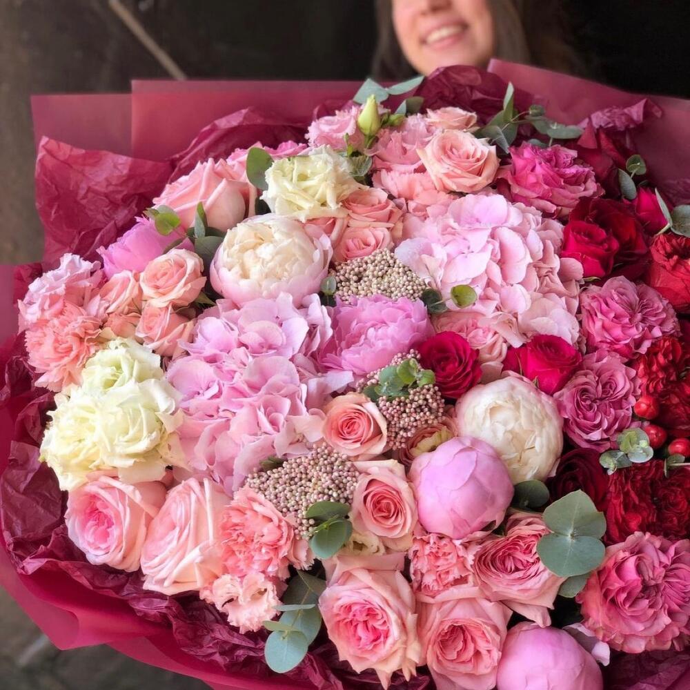 Гвоздики, Кустовые розы, Пионовидные розы, Розы