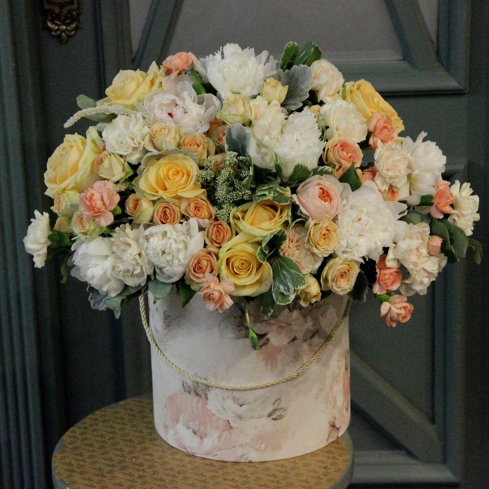 “В твоих глазах”: нежная шляпная коробка с французскими розами