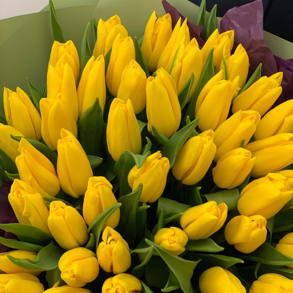 тюльпаны – 51 шт.Дизайнерская упаковка – 2 шт.
